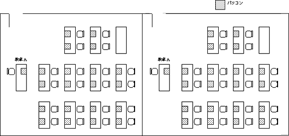 授業の受講人数や授業形態に合わせて、自在にパーテーションを変更して、教室のパソコンをフル活用できます。 【レイアウト図】